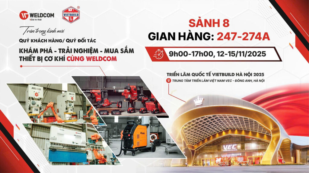 Từ ngày 12 – 15/11/2025, Weldcom góp mặt tại Triển lãm Quốc tế VietBuild Hà Nội 2025 tại gian hàng 247–274A, sảnh 8, Trung tâm Triển lãm Việt Nam (VEC). VietBuild Hà Nội là sự kiện quy tụ hàng trăm thương hiệu hàng đầu trong lĩnh vực xây dựng, vật liệu, và công nghệ sản xuất – một điểm hẹn lý tưởng cho các doanh nghiệp, kỹ...