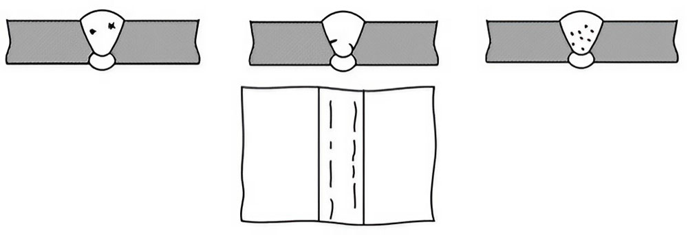 - Mép hàn chưa được làm sạch hoặc khi hàn đính hay hàn nhiều lớp chưa gõ sạch xỉ.