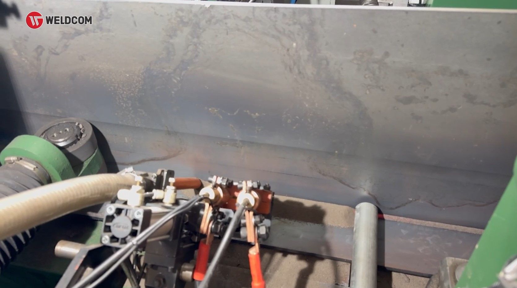 Hệ thống rải và hút thuốc hàn tự động tiếp tục tối ưu vận hành bằng cách loại bỏ thao tác thủ công, giữ cho quá trình hàn SAW diễn ra liên tục, ổn định và sạch hơn. Kết hợp với bộ cấp dây tích hợp encoder và cụm tiếp mass kép, toàn bộ quá trình hàn được duy trì ở trạng thái ổn định — yếu tố quyết định đến chất lượng mối hàn khi chạy tốc độ cao.