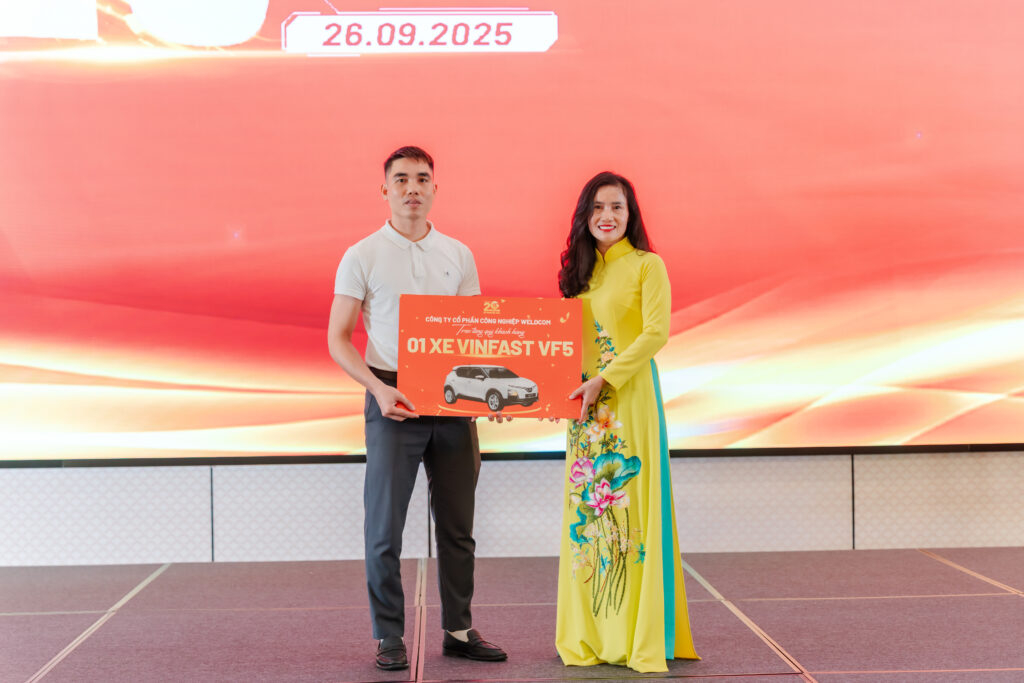 Đặc biệt, Weldcom đã trao tặng xe điện VinFast VF5 cho Công ty Cổ phần Xuất nhập khẩu Thương mại Tiến Mạnh, đánh dấu sự hợp tác chiến lược với giải pháp nhà máy kết cấu thép ứng dụng hệ thống WMMS IoT – minh chứng cho sự chuyển mình mạnh mẽ của ngành cơ khí trong kỷ nguyên số.