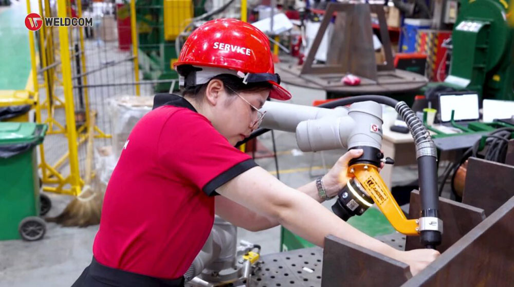 COBOT đang trở thành giải pháp tự động hóa hiệu quả và linh hoạt cho nhiều xưởng sản xuất hiện nay. Tại Weldcom, cấu hình cánh tay cobot dời được phát triển nhằm cho phép kết nối trực tiếp với nguồn hàn có sẵn của khách hàng, giúp tối ưu chi phí đầu tư và phù hợp với điều kiện sản xuất thực tế tại Việt Nam.
