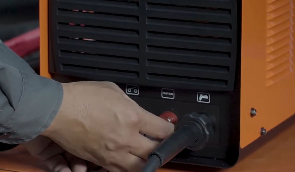 - Kết nối súng cắt Plasma vào giắc tương ứng trên máy.