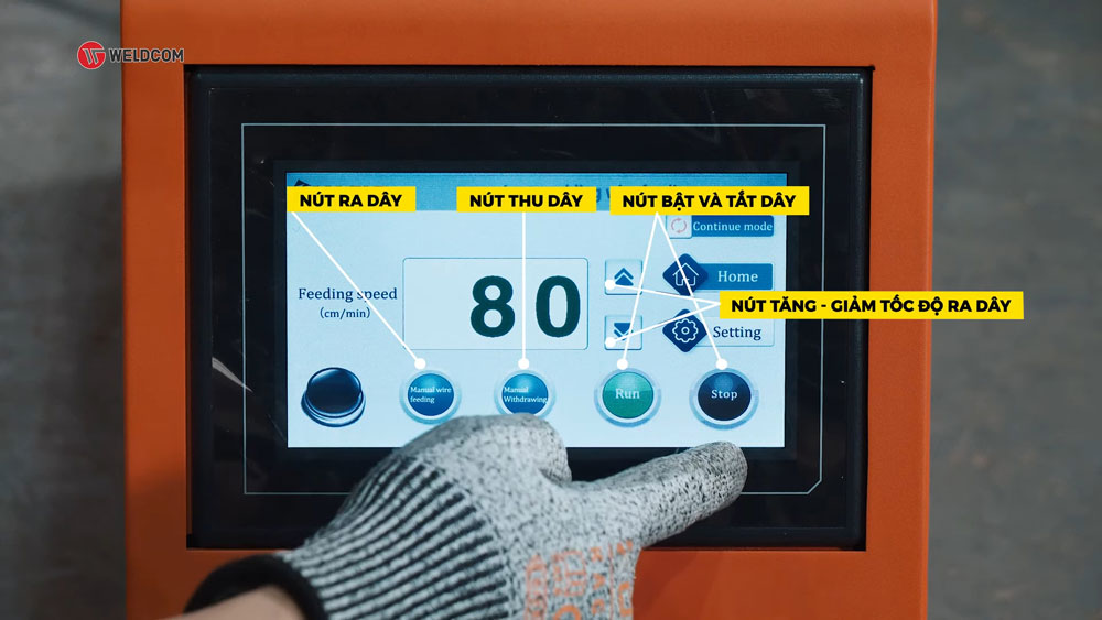 - Núm A: điều chỉnh tốc độ ra dây hàn