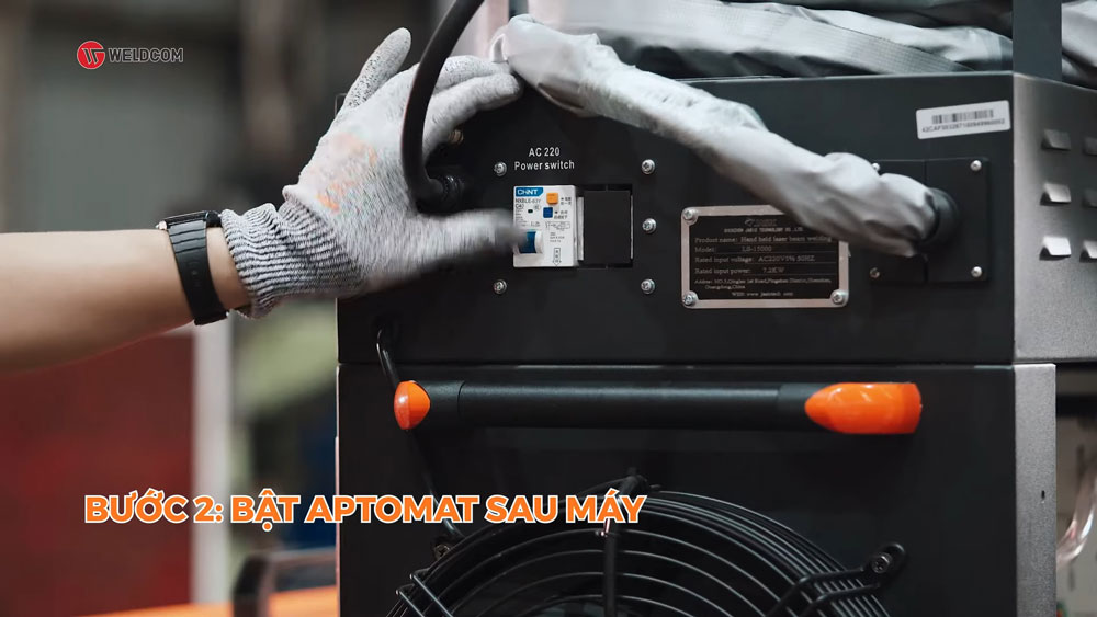 Cuối cùng, cắm điện và bật aptomat phía sau máy hàn.