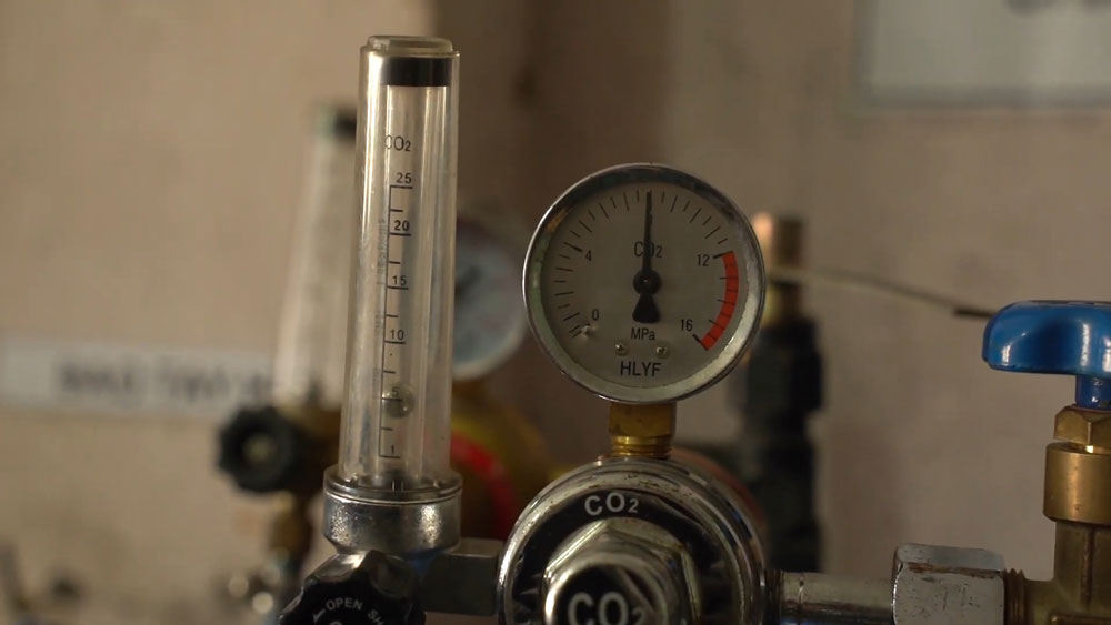 Điều chỉnh lưu lượng khí bằng cách bóp cò súng, quan sát viên bi trên đồng hồ khí, thông thường mức 5 là phù hợp cho hàn MIG.