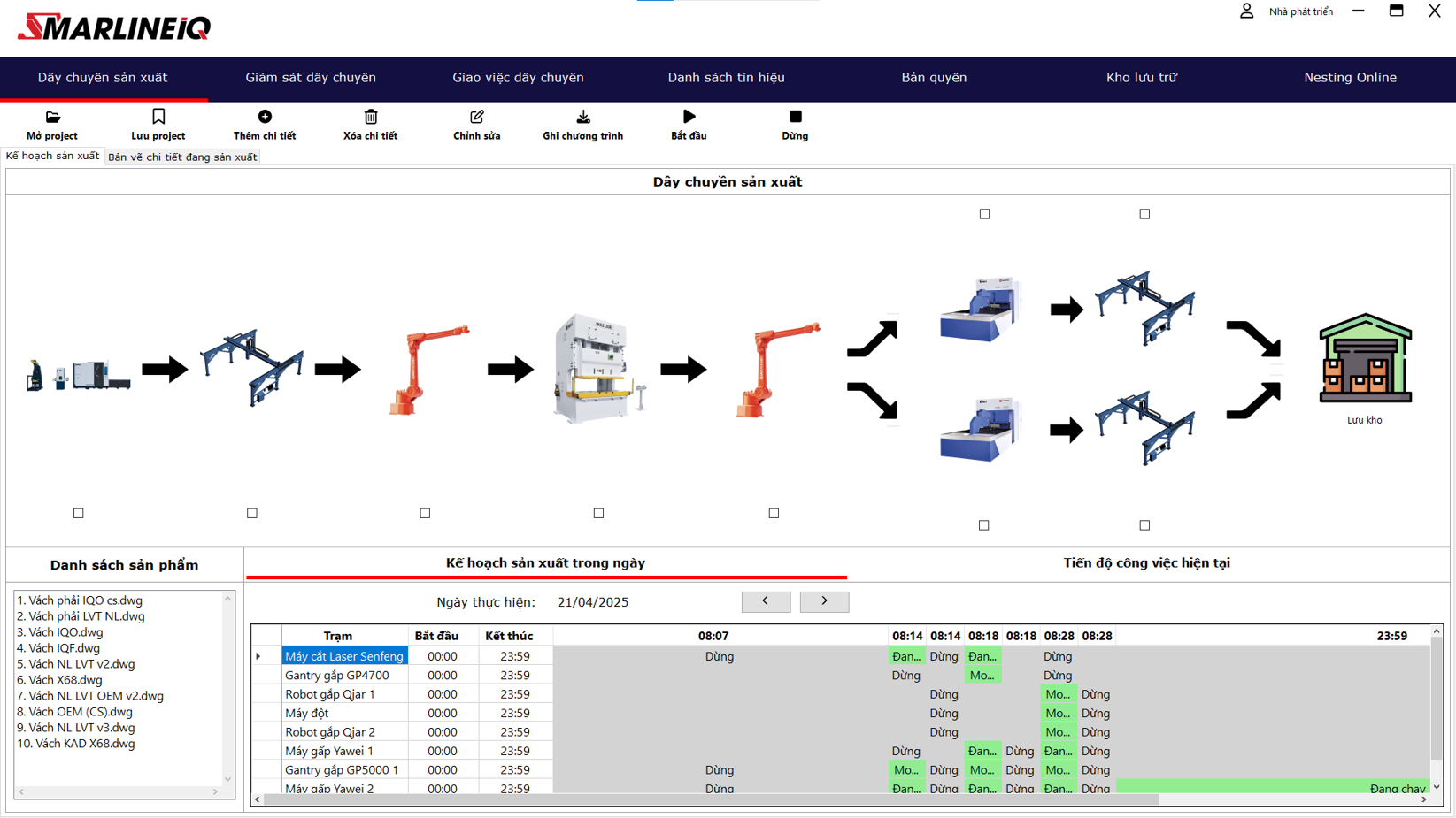 Thay vì phải thao tác thủ công và cài đặt từng máy, người vận hành giờ đây có thể dễ dàng lập kế hoạch sản xuất, giao việc và gửi chương trình điều khiển đến từng thiết bị chỉ qua một nền tảng tập trung. Thậm chí, phần mềm còn hỗ trợ phân rã công đoạn, giúp tối ưu hóa quy trình sản xuất toàn dây chuyền, tránh tình trạng máy chờ việc hay người chờ máy.