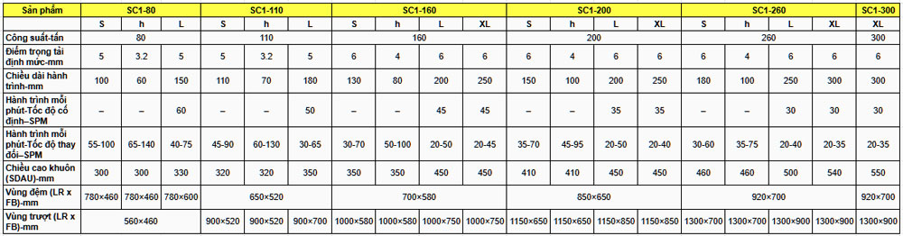 Thông số kỹ thuật máy dập khung H một trục khuỷu – SC1 series