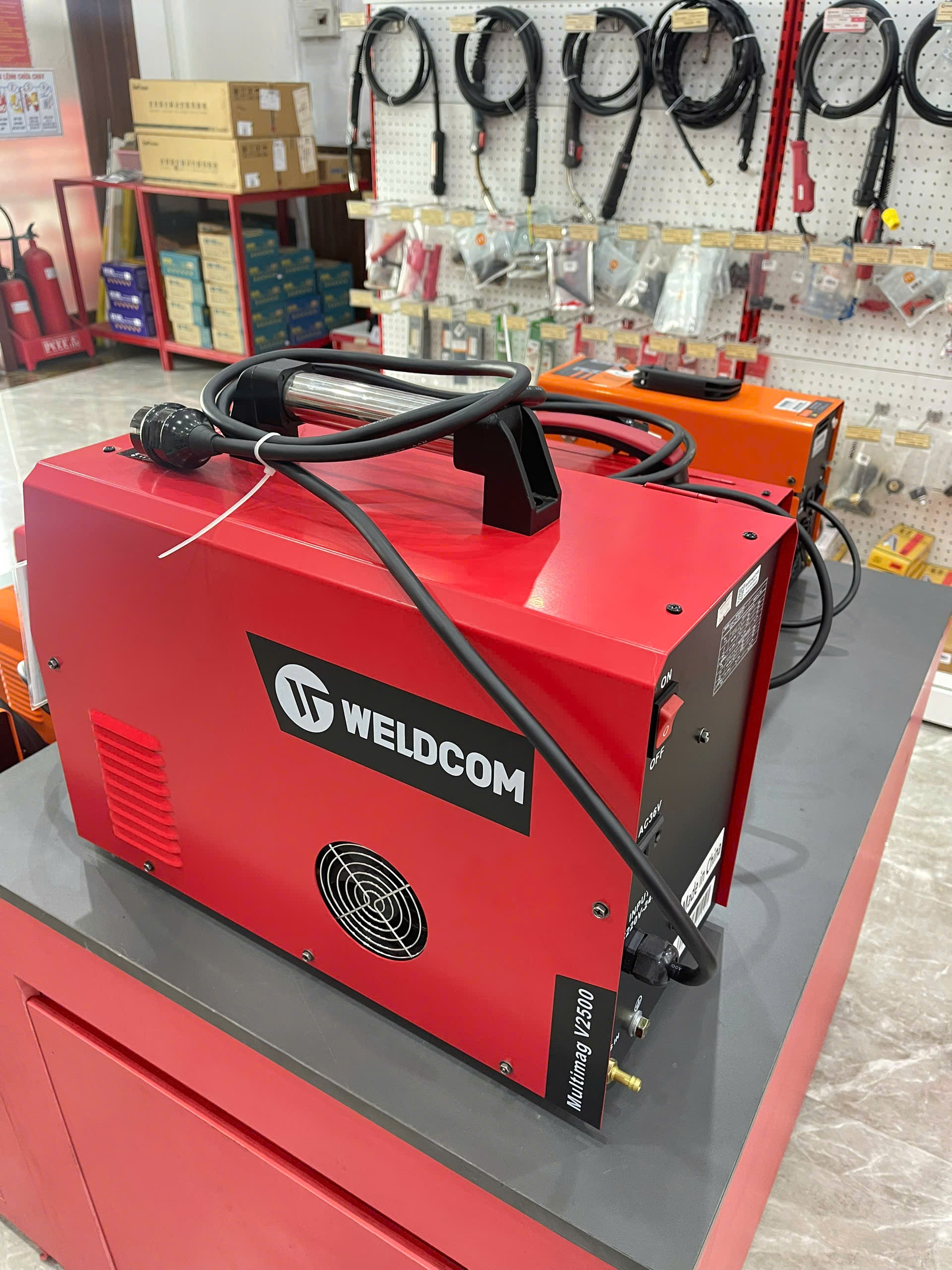 - Máy hàn MIG Weldcom MULTIGMAG V2000 đặc biệt lợi thế khi hàn MIG bằng dây lõi thuốc tự bảo vệ đường kính 0.8-1.0mm không cần dùng khí. Hàn trên thép mã kẽm siêu nhanh, sỉ hàn dễ làm sạch.