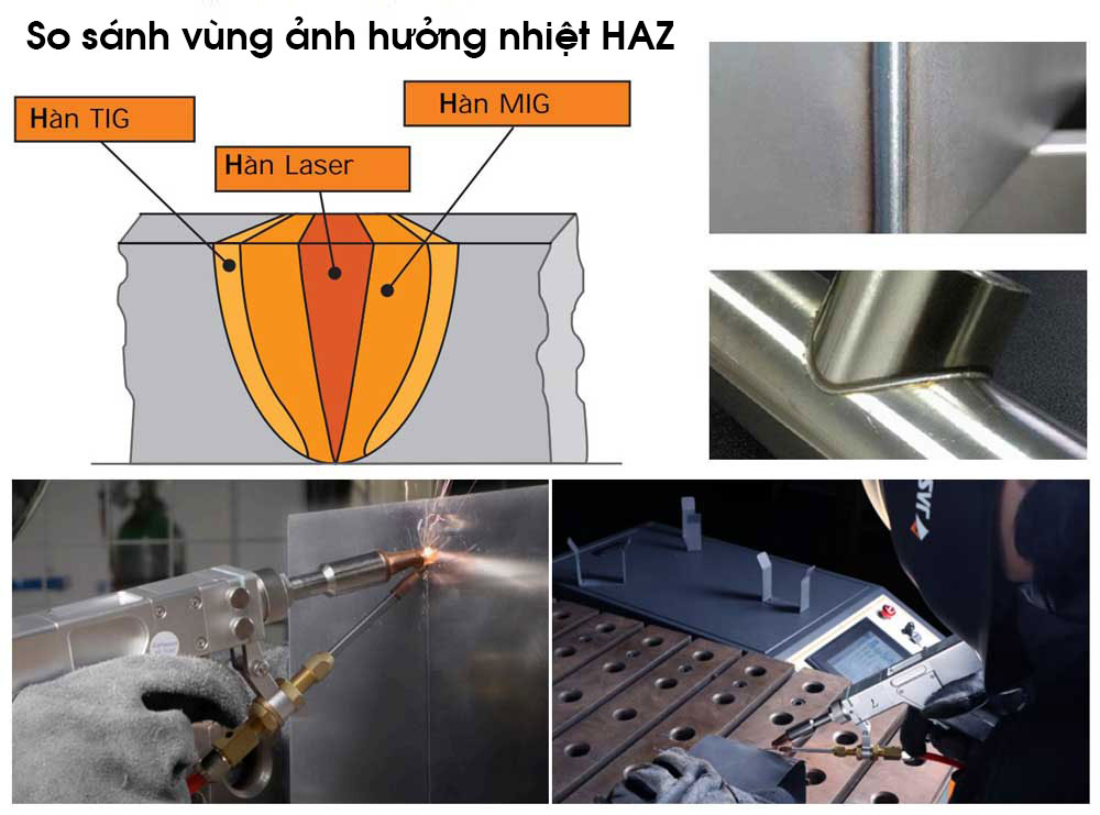 | Công nghệ hàn | Hàn hồ quang (Arc welding) | Hàn laser YAG (tinh thể rắn) | Hàn laser sợi quang (fiber) | |