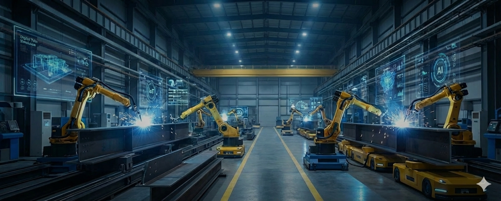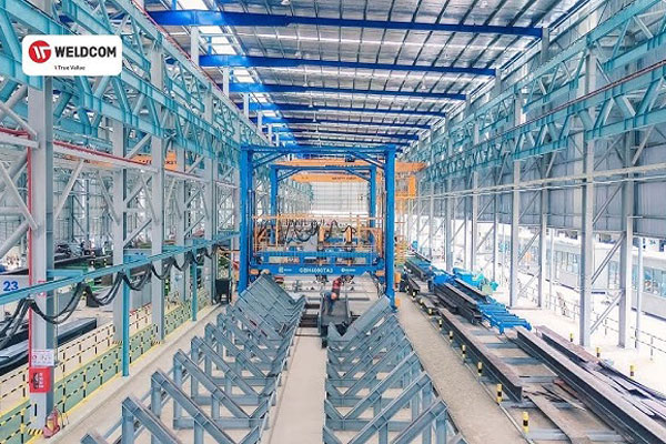 Weldcom STRUCTLINE cung cấp giải pháp tổng thể cho các nhà máy kết cấu thép, từ tư vấn quy trình hàn – tự động hóa – robot – nhà máy thông minh đồng bộ.
