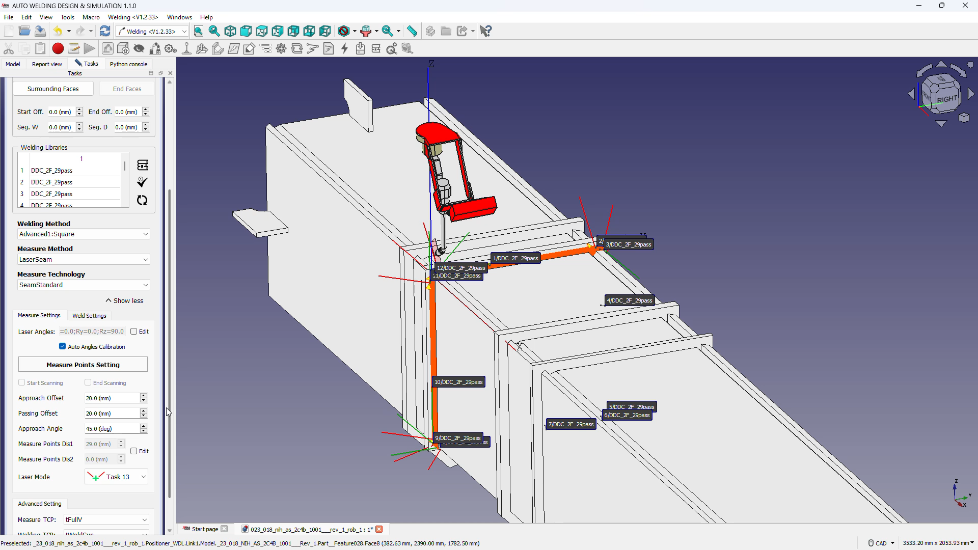 - Thứ 2 là chế độ tạo chương trình hàn bán tự động. Thay vì phải thiết lập thủ công từng điểm hàn (5–10 điểm), người vận hành chỉ cần xác định 1 đường hàn duy nhất, phần mềm sẽ tự động phân tích và hoàn thiện lộ trình hàn thông qua thư viện dữ liệu hàn thông minh. Khi kết hợp thêm cảm biến laser, độ chính xác được nâng cao rõ rệt, đồng thời giảm đáng kể khối lượng thao tác và ghi nhớ mà người vận hành phải xử lý.