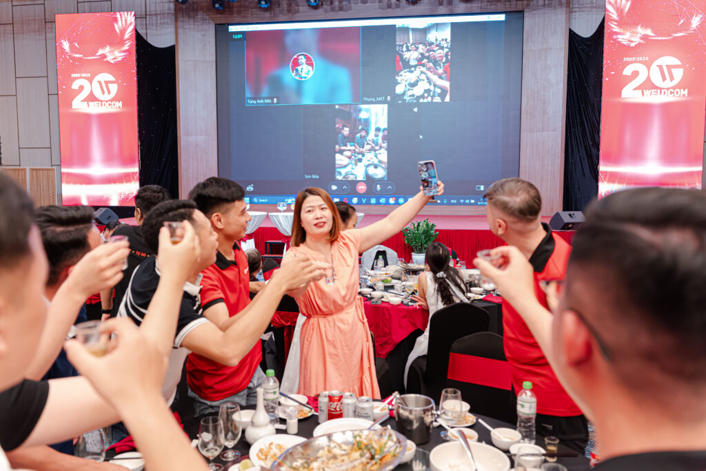 Khoảnh khắc xúc động nhất là khi toàn thể cán bộ nhân viên cùng nhau thắp nến sinh nhật, hô vang “20 – Weldcom!”, cùng nâng ly mừng tuổi mới của đại gia đình. Tiếng hô vang, ánh nên lung linh và những nụ cười rạng rỡ đã tạo nên khung cảnh thật thiêng liêng – khắc sâu trong ký ức mỗi người.