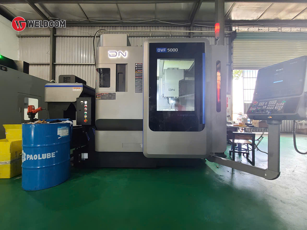 Ngày 23/08 vừa qua, Weldcom đã chính thức hoàn tất lắp đặt, hiệu chỉnh và bàn giao máy CNC 5 trục DVF 5000 thế hệ 2 cho khách hàng hoạt động trong lĩnh vực gia công khuôn mẫu tại TP.HCM. Đây là một trong những dòng máy cao cấp của DN Solutions, được ứng dụng rộng rãi trong ngành khuôn mẫu, hàng không và các lĩnh vực yêu cầu độ chính xác cao.